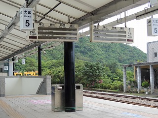 | 知本からは電化されている。 既に電化されている南迴線の駅は 工事をしていないので、 ホームは南国的なタイプのままだ。 |