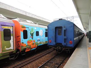 | 「普快3671次」で台東へ向かう。 台湾国内で1日1往復だけに なってしまった旧客の列車だ。 最近は注目されるようになり、 週末は台湾屋内のツアー客で 満席になることもあるのだが、 今日は星期一(月曜日)なので、 団体様はどうかな~。 |