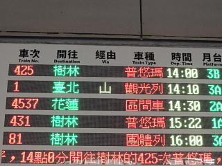 | さて、「觀光列」の「莒光1次」で 花蓮へ向かう。 |