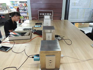 | 待合室の中のイレブン屋の前に 充電スペースがある。 |