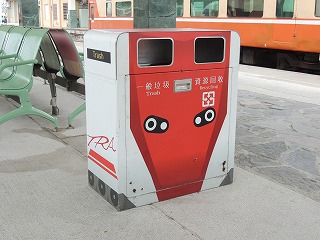 台東車站のホームにあった 普悠瑪デザインのゴミ箱。 |
