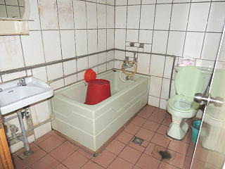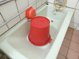 UB。 浴槽にでかいバケツが 置いてあった。 |