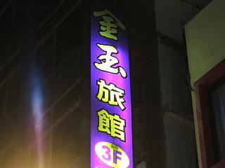 | 晩メシをどうしようかと、 宿の周辺をうろちょろする。 その途中で素晴らしい名前の 宿を見つけた。 |