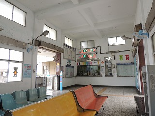 大里車站の待合室。 | 大里で最近硬券を発売し始めた という情報を得たので、 今回買いに来た。 全口座を希望したが、 事前の情報ではあるとされていた ものが一部なかった。あれ~? チープながらいい雰囲気の ツクリの封筒もくれたよ。 ダッチングはスタンプ。 俺に押させてくれた(嬉)。 |