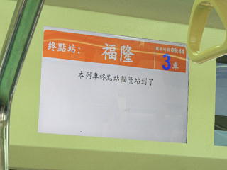 どうも調子がよくなかったみたいで、 カレチさんがこの車輛の情報盤の 電源を切ってしまった。 電源を切る前に1度再起動を 試みたけど、やっぱダメだった。 ところで、この表示のベースは 懐かしのWindows XPを使っていた (起動時にディスプレイ に表示されていた。)。 情報盤の電源を切ったら、 車輛の音声の電源も切れたようで、 到着案内などが流れず、 お陰で台北まで静かな車内だった。 車内は台北に近付いてもガラガラで、 ちょうど乗客にも、台湾にありがちな スマホで音声を出して動画を見る 人がいなかったので、よかった~。 |